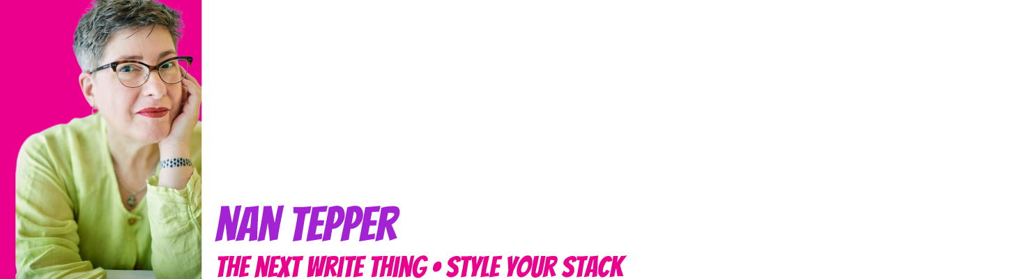 Nan is memoirist-in-chief at The Next Write Thing and styles stacks for other writers who need her help at Style Your Stack. She’s made friends with some super-SHERO writers who’ve become great friends.