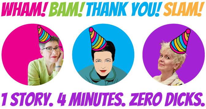 We’ll give you a theme for the Slam, and you’ll write and tell an amazing story, and everyone will cheer and roar and stamp their feet!