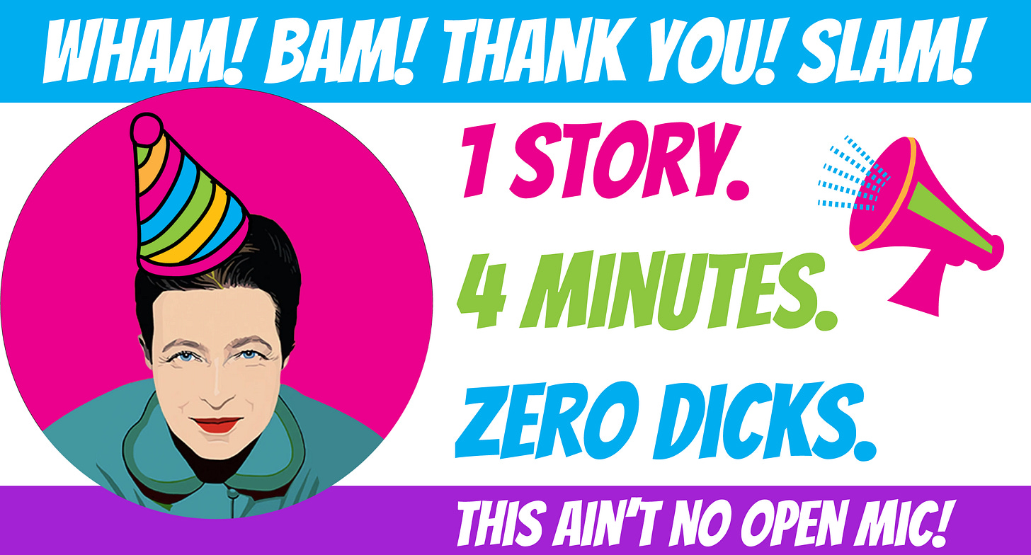 I wanted to create a slam on Substack since I landed here 2 years ago, but I knew I needed to wait so I could make friends, find my feet, and get acquainted with what’s possible on this platform. I began scheming and dreaming of all the ways I could champion storytellers here, and do my part to help others succeed.